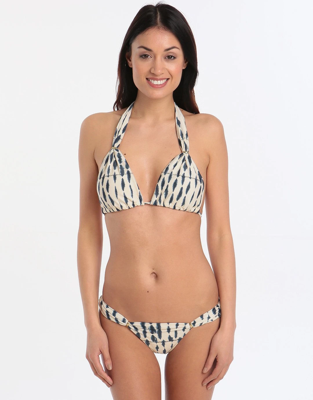 Get the complete look with the Lenny Niemeyer Mini Padang Adjustable Halter Bikini with matching hipster, both in an Indonesian inspired ethnic print. The adjustable slider detail on the halter bikini allows you to adjust the coverage over the bust.