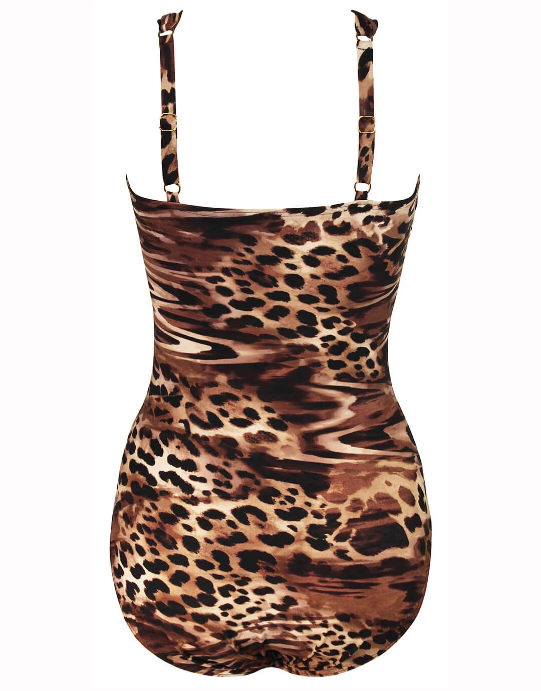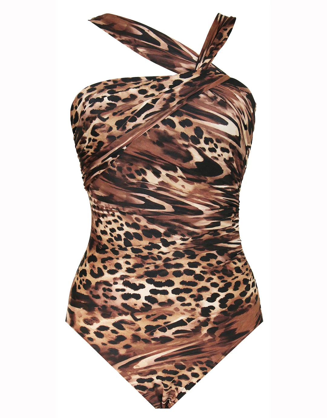 The gorgeous Ocicat Europa swimsuit from Miraclesuit is a great new style with a bandeau neckline, underwire and offset wide halter look straps which attach at the back in classic style with adjusters for optimum fit.
