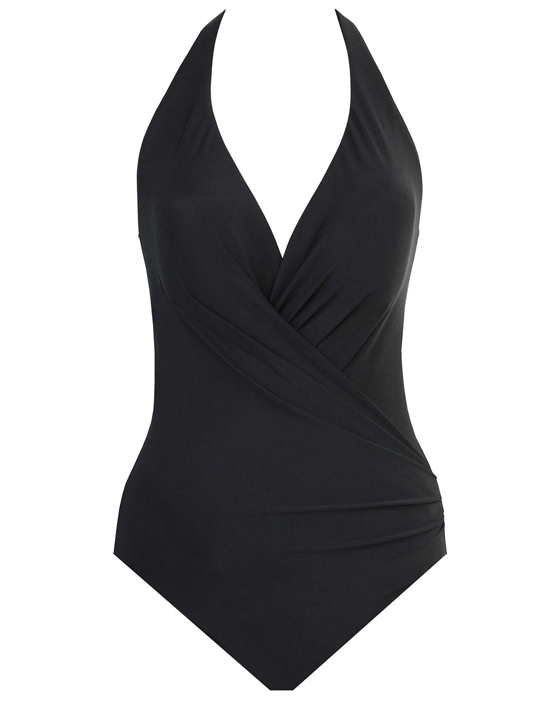 The Rock Solid Wrapsody swimsuit from Miraclesuit is an elegant V neck wrap style with feature straps fixed at the back of the neck with a clip creating a halterneck shape and finished with adjustable straps at the back for optimum fit and support.