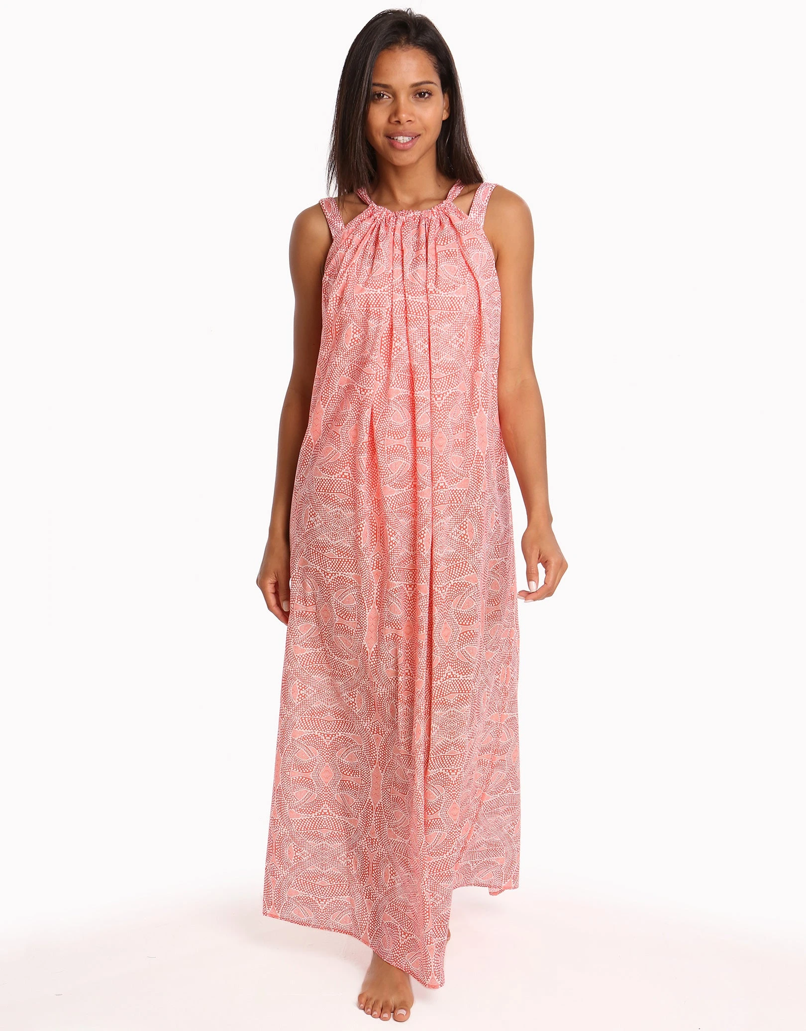 This Paolita Malika Cotton Maxi Beach Dress features a long tie that is threaded through the neckline through to the back where it can be tied in different ways for a customisable look, allowing you to wear it as a loosely fitted beach maxi by day, then as an elegant fitted maxi by night!