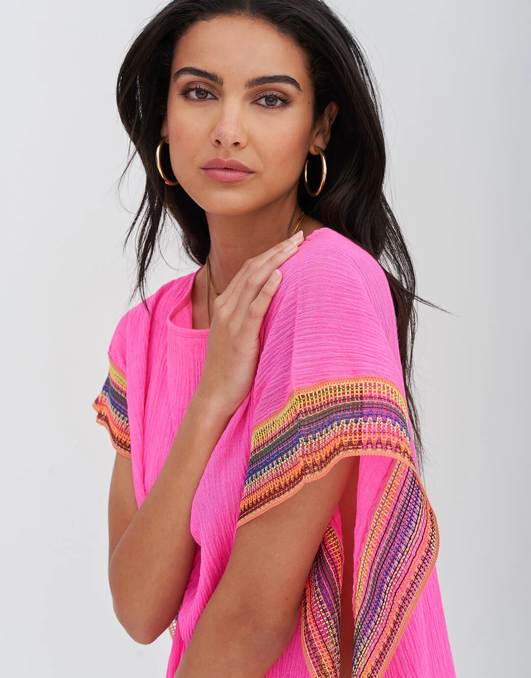 The Crinkle Maxi Kaftan from Pitusa is a great maxi-length style with a round neck and wide Inca trim detailing to the open sides which are fixed at one point around hip height. Available in Standard or Petite lengths. Choose Standard if you’re over 5ft 4in and Petite if you’re under.