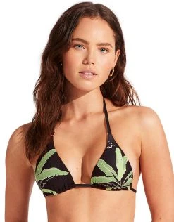 Seafolly Palm Paradise Slide Tri Bikini Top – Black