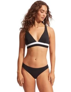 Seafolly Slice Of Splice Longline Tri Bikini Top – Black And White