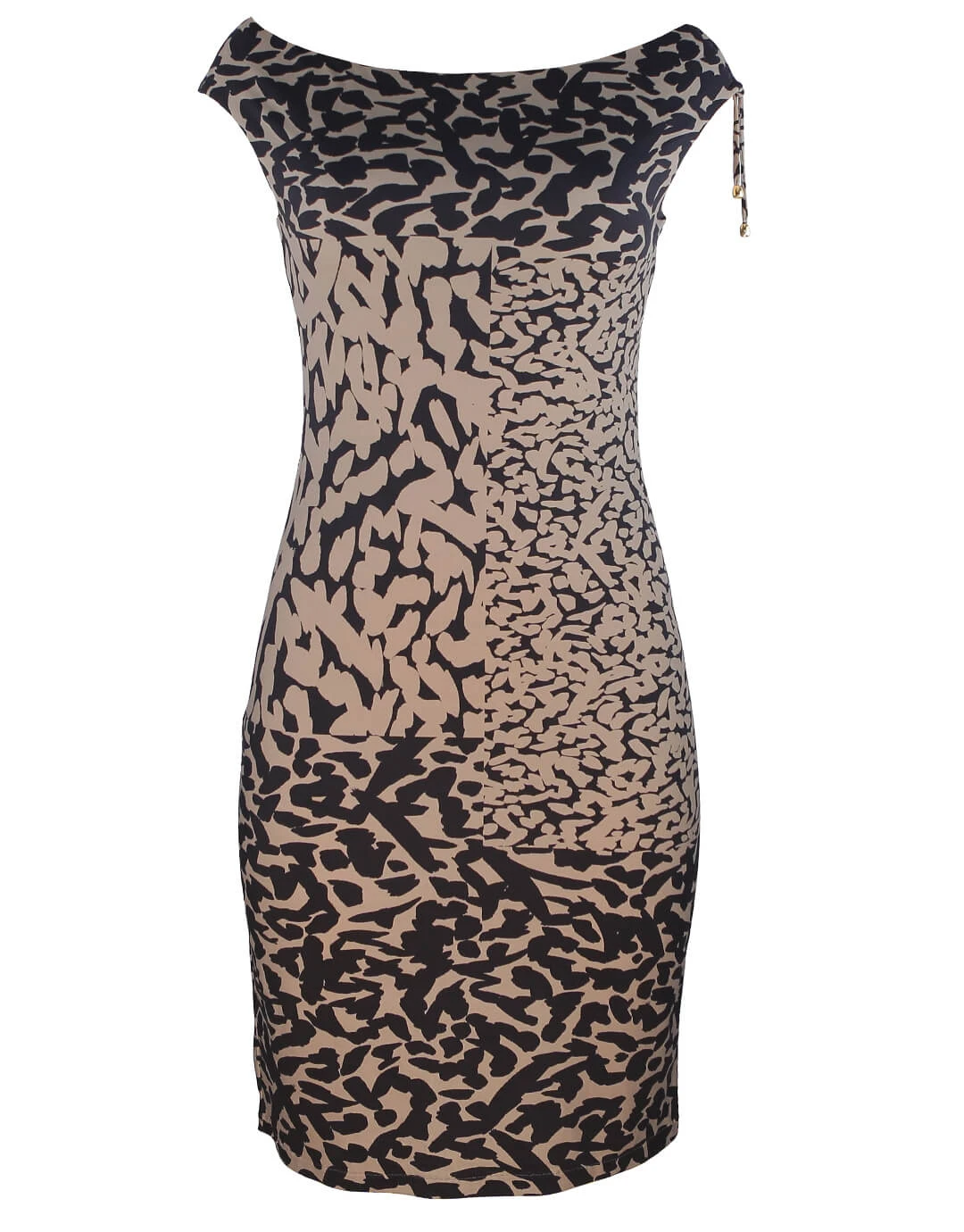 The Tattoo dress from Roidal is a pretty figure-hugging knee-length dress with capped sleeves and a gather with tie on one shoulder.